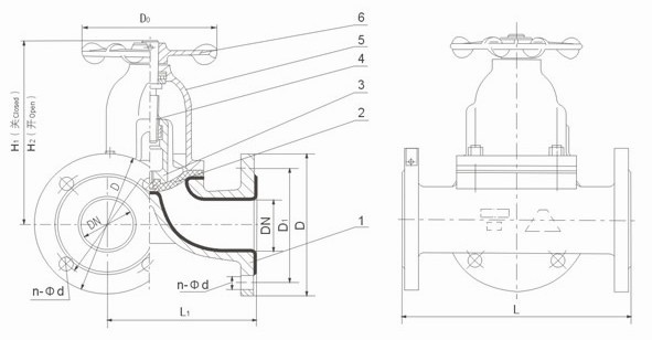4. 閥體與蓋被中間隔膜隔開,使得隔膜上方的閥蓋,閥桿等零件不受介質侵蝕;