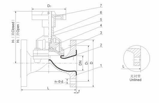 附3、視膠隔膜閥的閥體內腔表面視復有廳供選擇的多種橡膠。因此具有優越的耐腐蝕的特點。