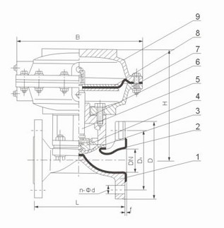 4. 閥體與蓋被中間隔膜隔開,使得隔膜上方的閥蓋,閥桿等零件不受介質侵蝕;
