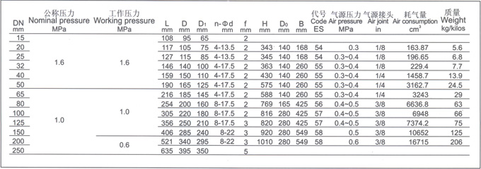 壓力等級:PN(MPa) 0.6 1.0 1.6