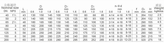 法蘭連接尺寸:ANSI B16.1