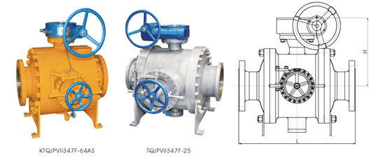 清管閥型號表示 KTQ/B PCII347F-16C-DN200-AS K-表示抗硫,非抗硫不加;T-表示天然氣專用,非天然氣不加;B-表示保溫夾套;非保溫型不加;PV-表示清管裝置;II-表示帶旁通型/I表示標準型/III表示隔離型;3-表示蝸輪傳動;4-表示法蘭連接;7-表示固定球三通式;F-表示閥座密封PTFE/N-為尼龍;16-公稱壓力;C-表示碳鋼WCB/P不銹鋼CF8,DN200-公通徑;AS-表示防靜電結(jié)構(gòu),非防靜電不加。