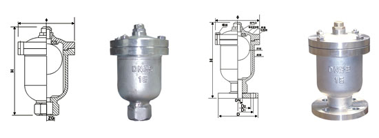 概況 此產品用于管道上的最高點或閉氣地方,來排除管內氣體來疏通管道使管道在工作中正常運轉。此排氣閥連接有二種(絲扣、法蘭) 絲扣式外型尺寸