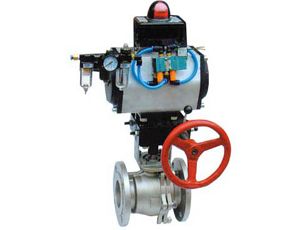 切斷球閥主要由氣動活塞式執行機構,切斷型球閥、兩部分組成。根據用戶需要,也可在執行機構和