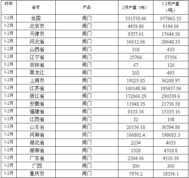 中國閥門市場前景頗好,據數據調查,1到2月份期間,全國的閥門總產量就達到977862.55噸之多。